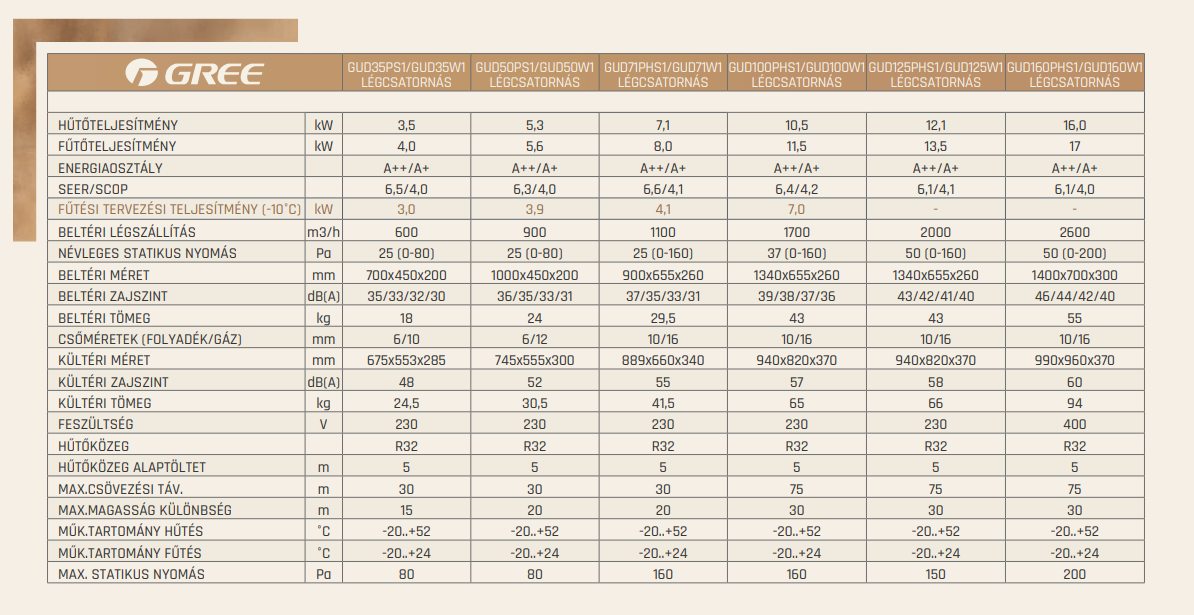 Gree GUD35PS / GUD35W Légcsatornás Split Klíma