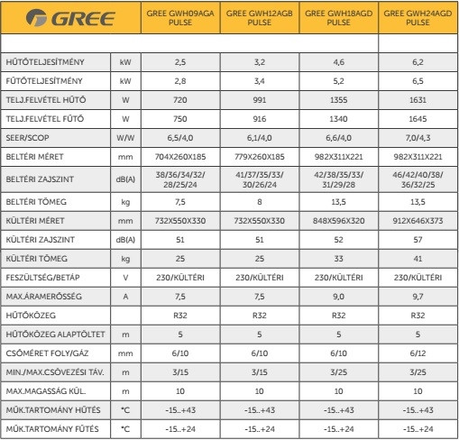 A Gree GWH09AGA Pulse Inverteres Split klíma fontos tulajdonságai: