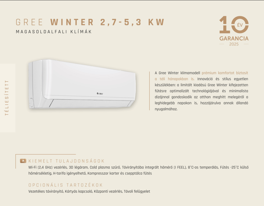 A Gree GWH09AGC-K6DNA2W Winter Inverteres Split klíma fontos tulajdonságai: